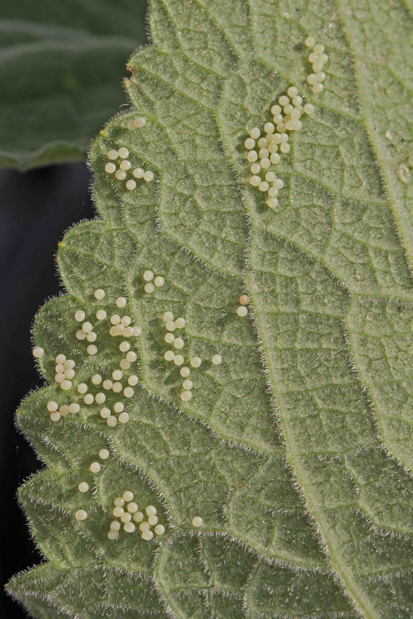 Melitaea athalia: Typisches Eigelege an Digitalis
