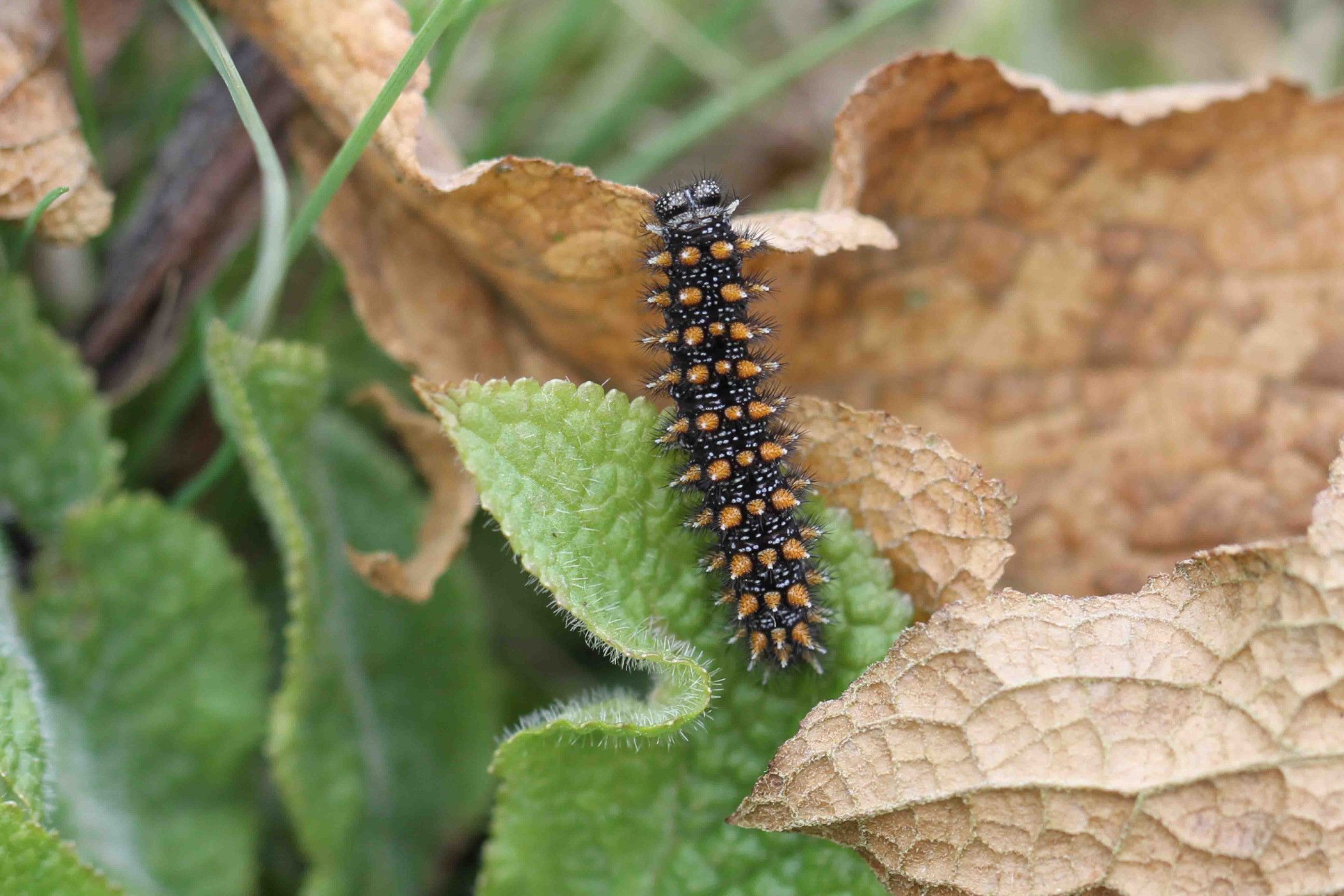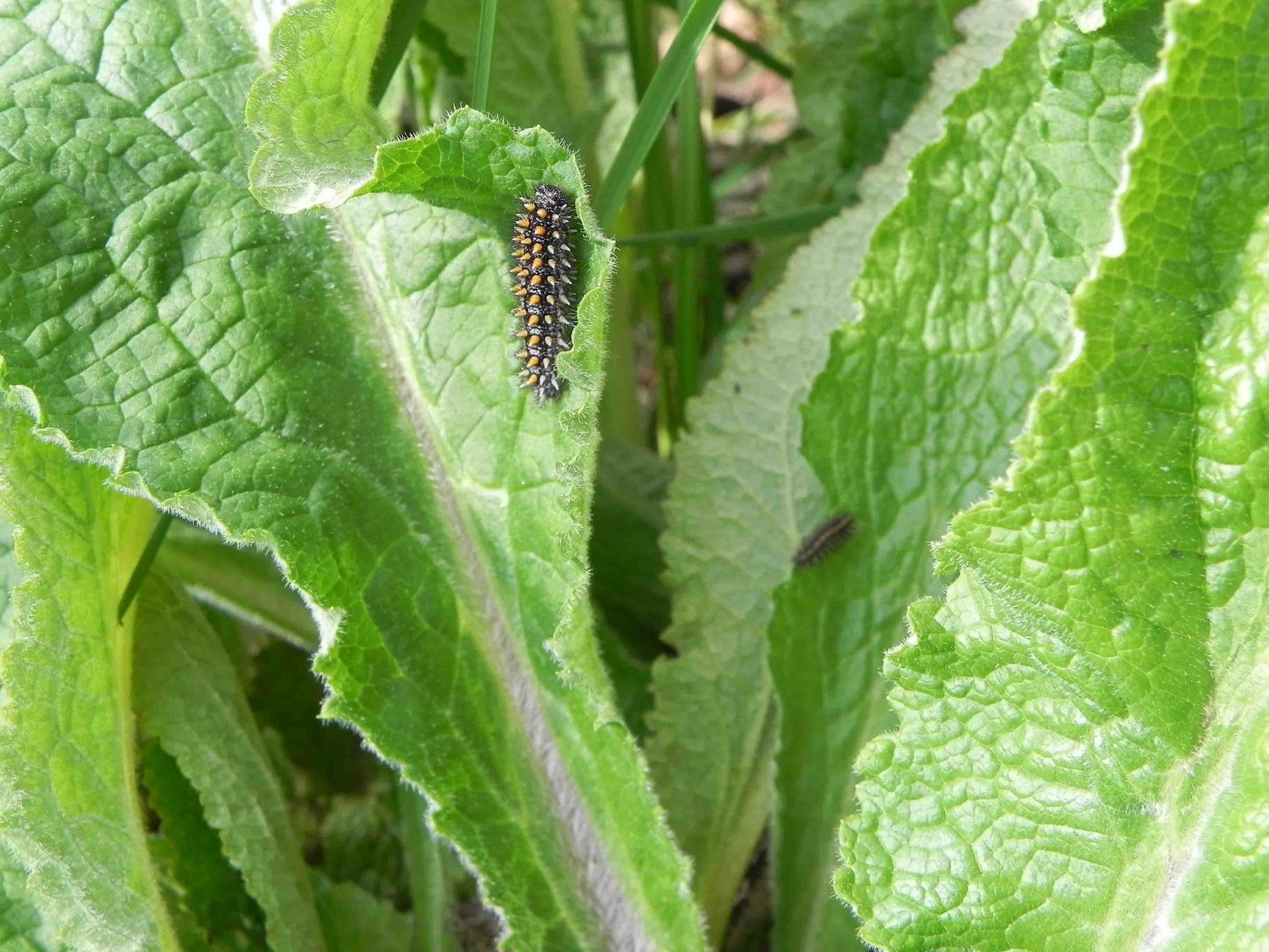 Melitaea athalia: Typisch ausgeprägte Wirtspflanze (Digitalis purpurea), in dem dichten Blattwerk verstecken sich die Raupen gerne und kommen bei Sonnenschein hervor.