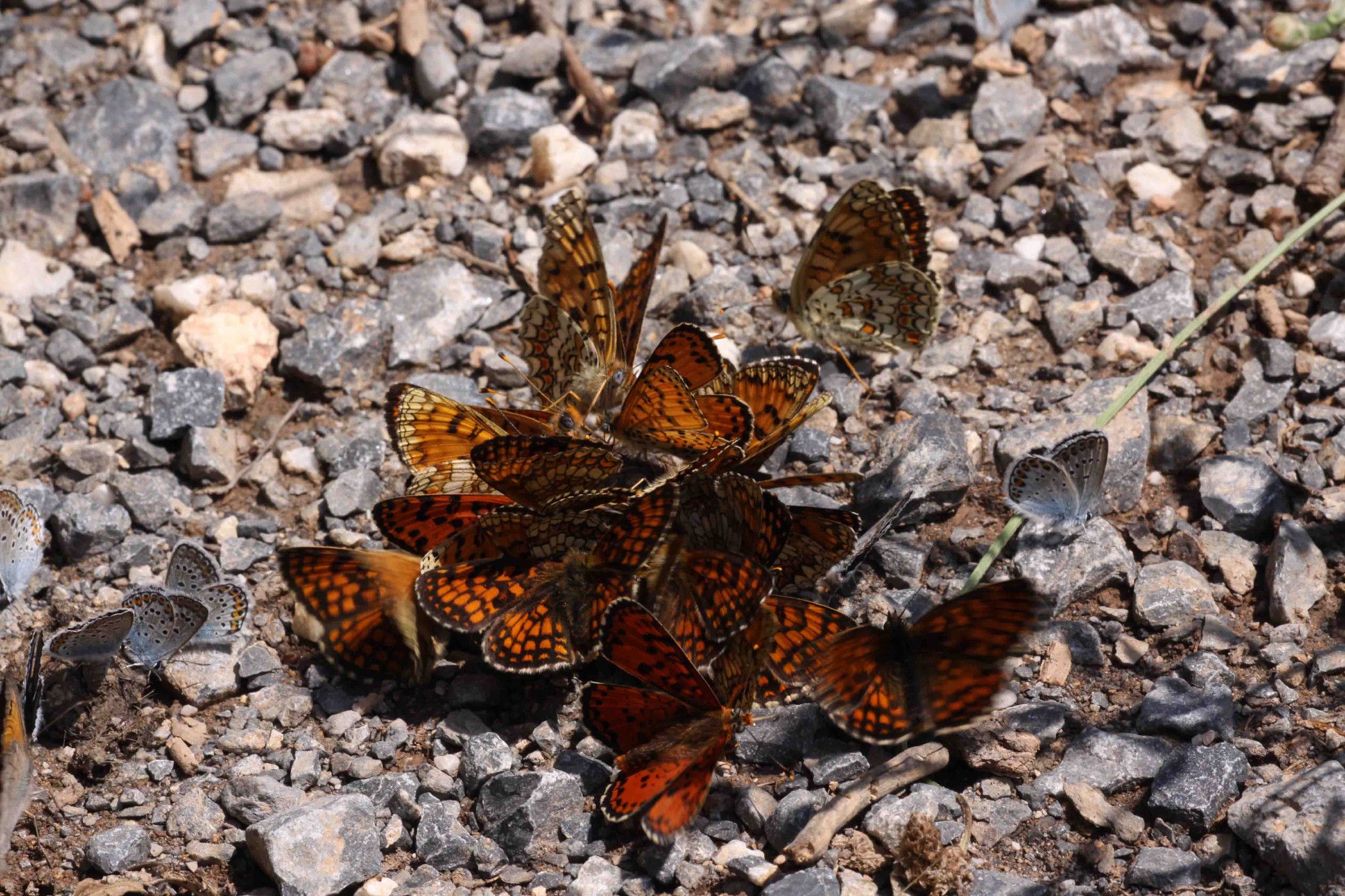 Melitaea athalia - Ansammlung an Fuchskot.