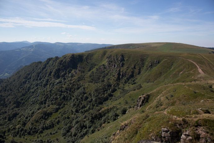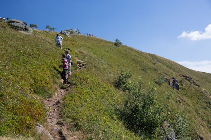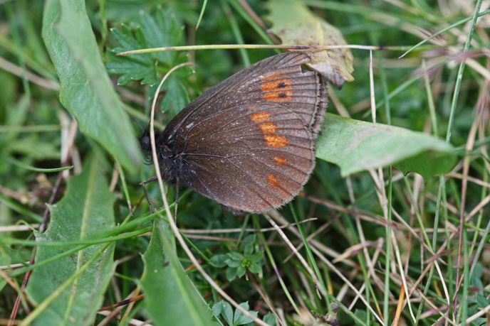 An diesen Hängen fühlen sich gleich mehrere Erebien wohl. Erebia manto, epiphron, euryale und ligea treffen wir am 16.8.2013 noch an.