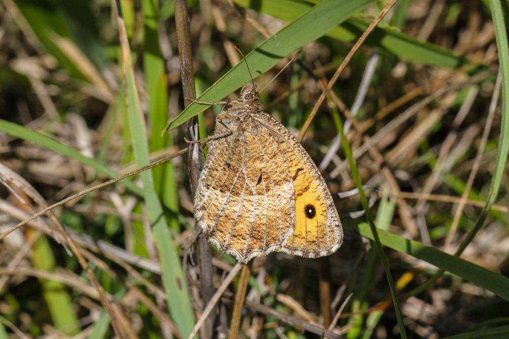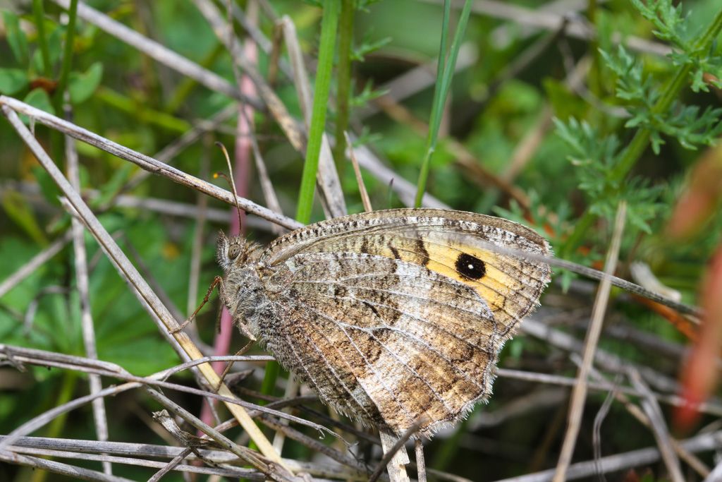 Arethusana arethusa im Gras sitzend warten sie auf den nächsten Sonnenstrahl.