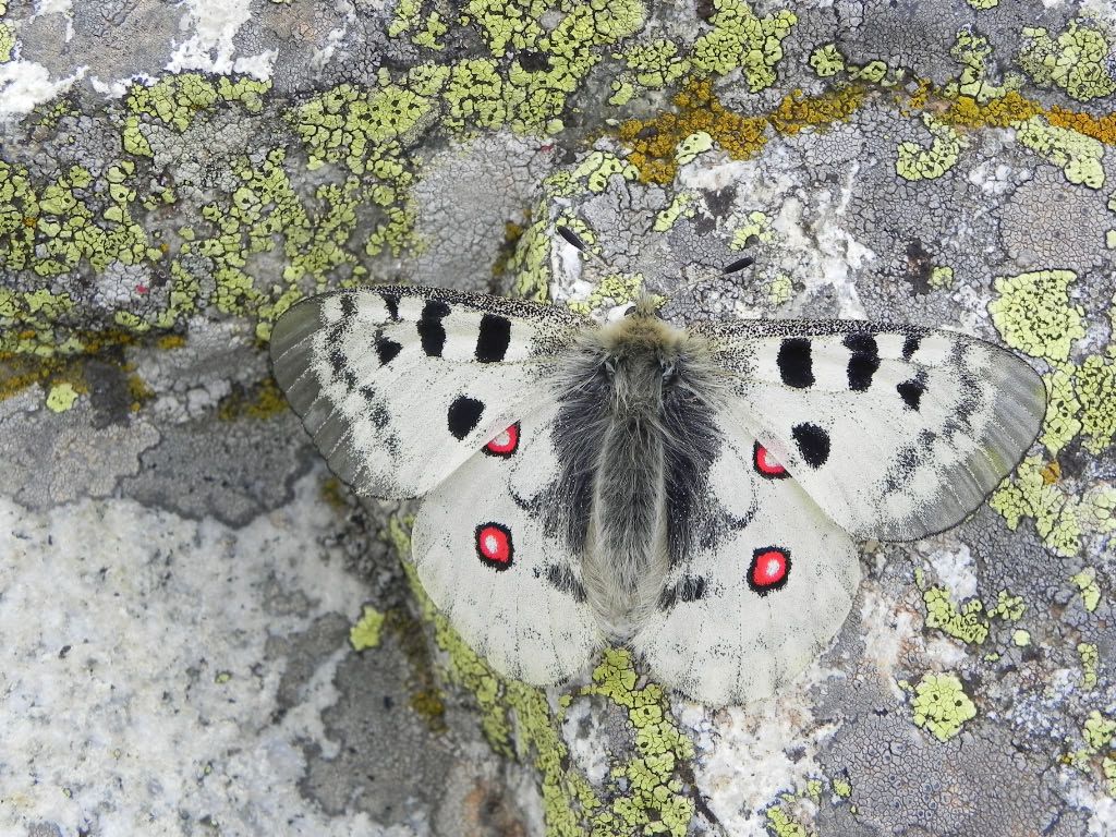 Das Ei ist leicht links unterhalb der Mitte des Blütenköpfchens zu finden. Natürlich wird sich die Raupe später von Sedum album ernähren, doch sind die Ablageplätze in vergleichsweise luftiger Höhe über den Sedum-Beständen an allem, was sich dazu...