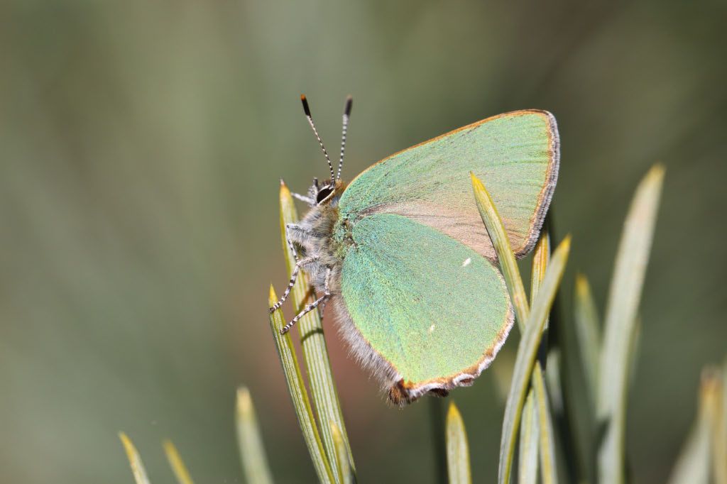 Eiablagestelle von Satyrium ilicis, das Ei befindet sich genau in der Bildmitte.