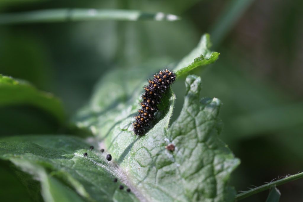 Raupe von Melitaea athalia - an Digitalis purpurea