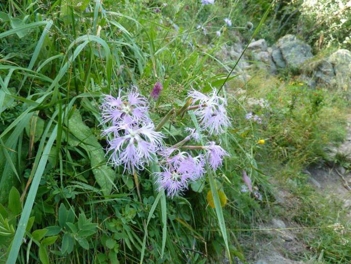 Das letzte Stück Aufstieg war dann extrem, ich war schon total schlapp und musste alle paar Schritte ausruhen… Für die Sachen die es da noch zu sehen gab hatte ich schon gar keinen Blick mehr, z.B. ein schöner mooriger Bereich mit viel Wollgras und Succisa. Toll fand ich noch [[Dianthus superbus]] – Pracht-Nelke.