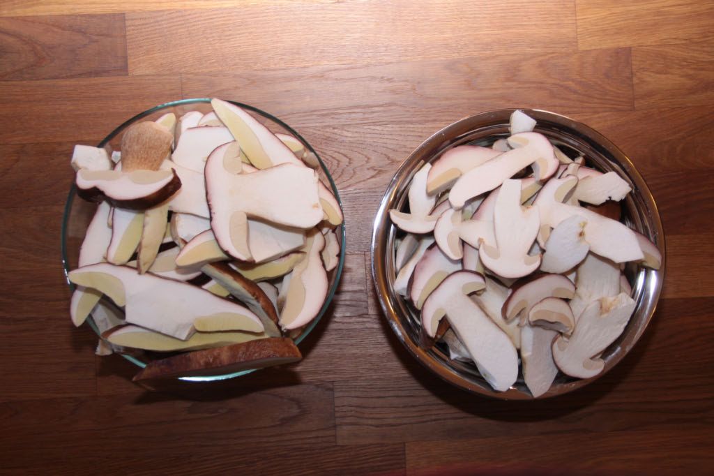 Insgesamt 7 Schüsseln voll schönste Steinpilzscheiben :-).