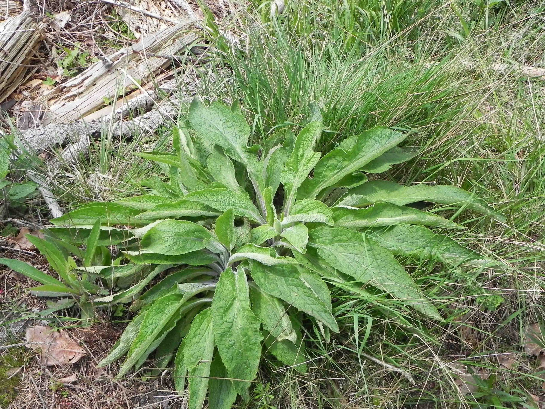 Melitaea athalia: Typisch ausgeprägte Wirtspflanze (Digitalis purpurea), in dem dichten Blattwerk verstecken sich die Raupen gerne und kommen bei Sonnenschein hervor.