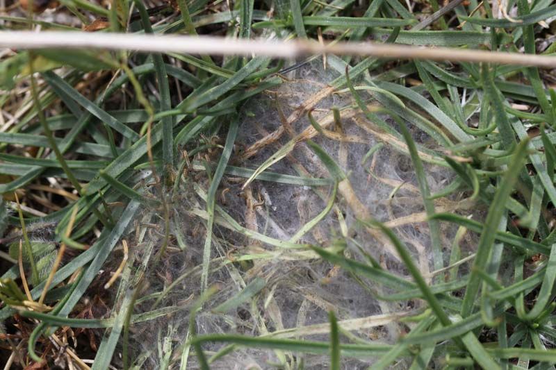 Ein Nest mit Eiraupen. Es waren meist um die 200 Raupen pro Nest