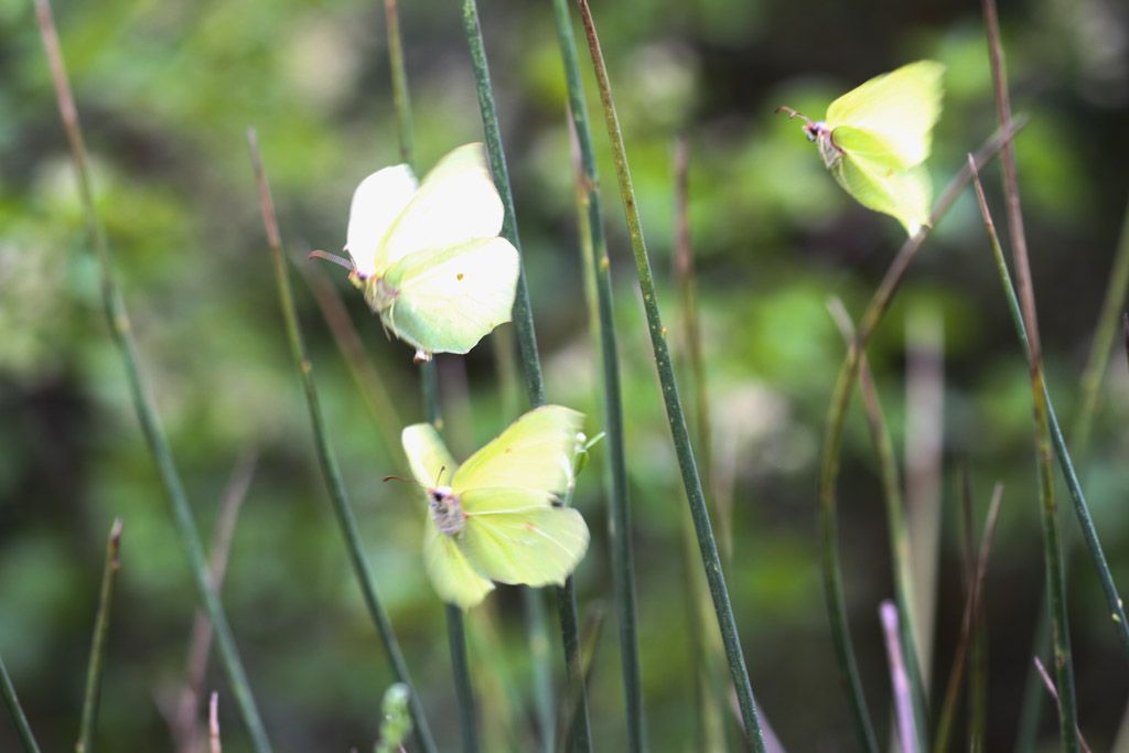 Gonepteryx rhamni - Weibchen mit Verfolgern.