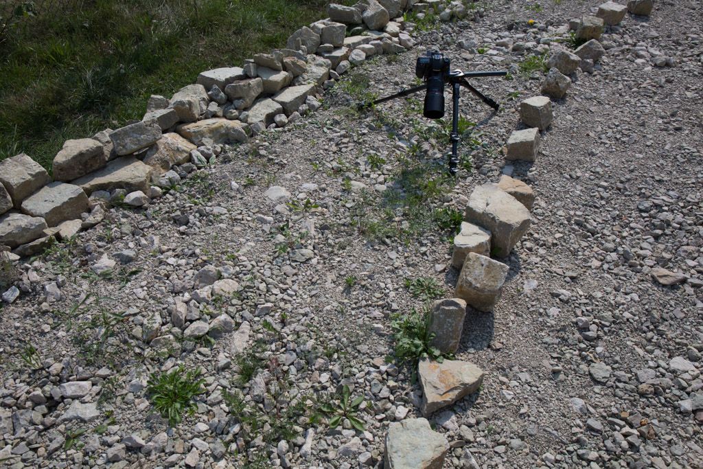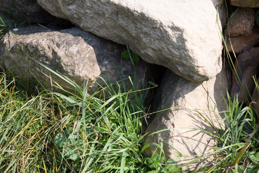 Die Stelle, wo das Braunauge ablegt, ist am Fuß der Steine, dort wo sie etwas überstehen.