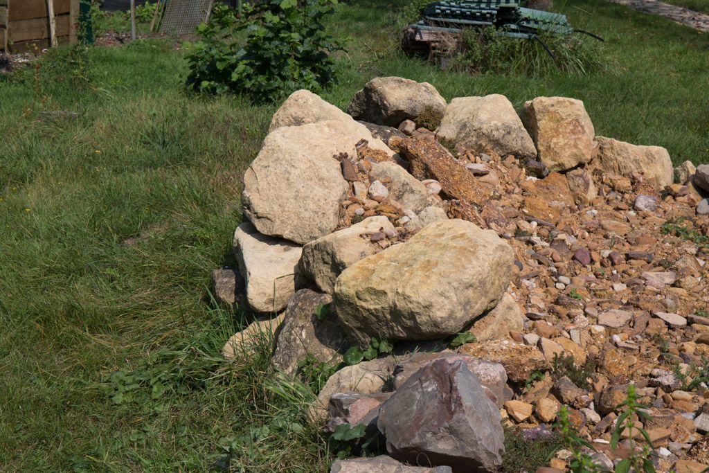 Sieht aus wie ein Schutthaufen, ist auch einer. Aber jetzt muss das erst mal liegen bleiben, denn hier sind über 30 Eier vom Braunauge verteckt!