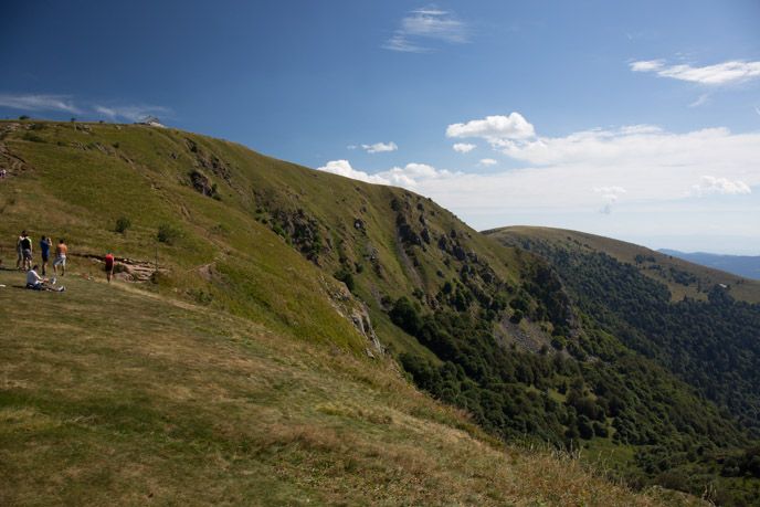 An diesen Hängen fühlen sich gleich mehrere Erebien wohl. Erebia manto, epiphron, euryale und ligea treffen wir am 16.8.2013 noch an.
