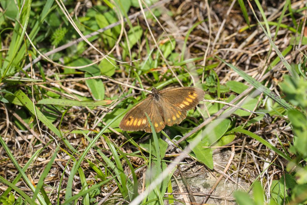 Arethusana arethusa, Männchen beim Sonnenbad.