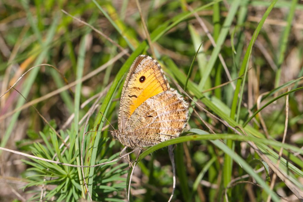 Arethusana arethusa im Gras sitzend warten sie auf den nächsten Sonnenstrahl.