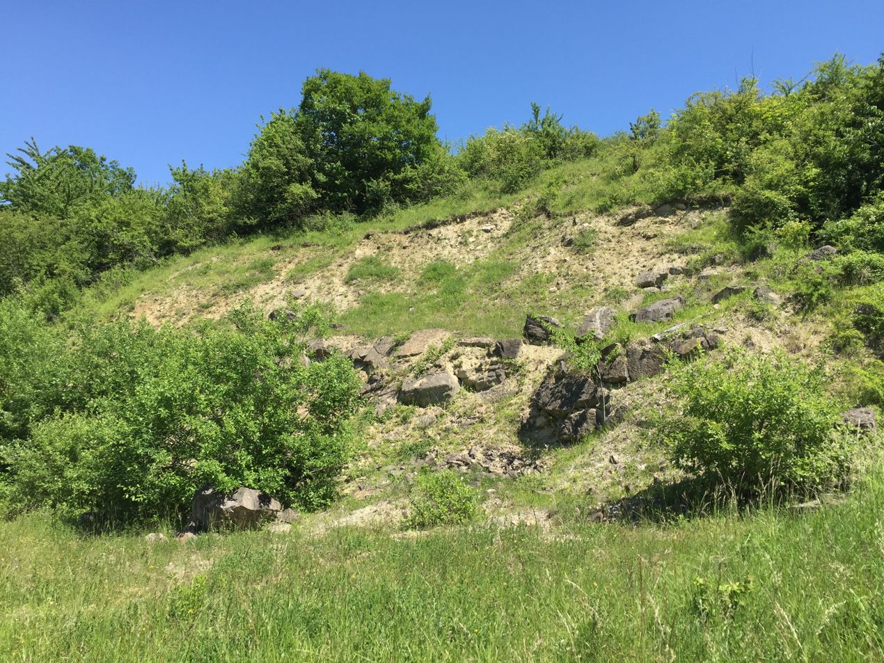 Teil des ehem. Steinbruchs: hier flogen 5 maera und 2 megera herum. Außerdem fand ich hier die größte Ansammlung von alexis Bläulingen, die ich je sah!
