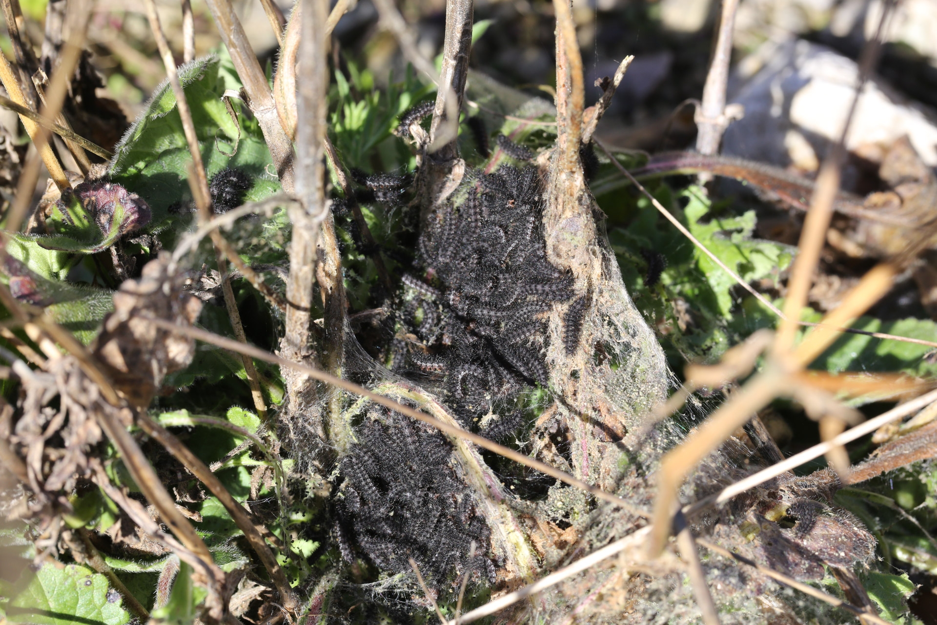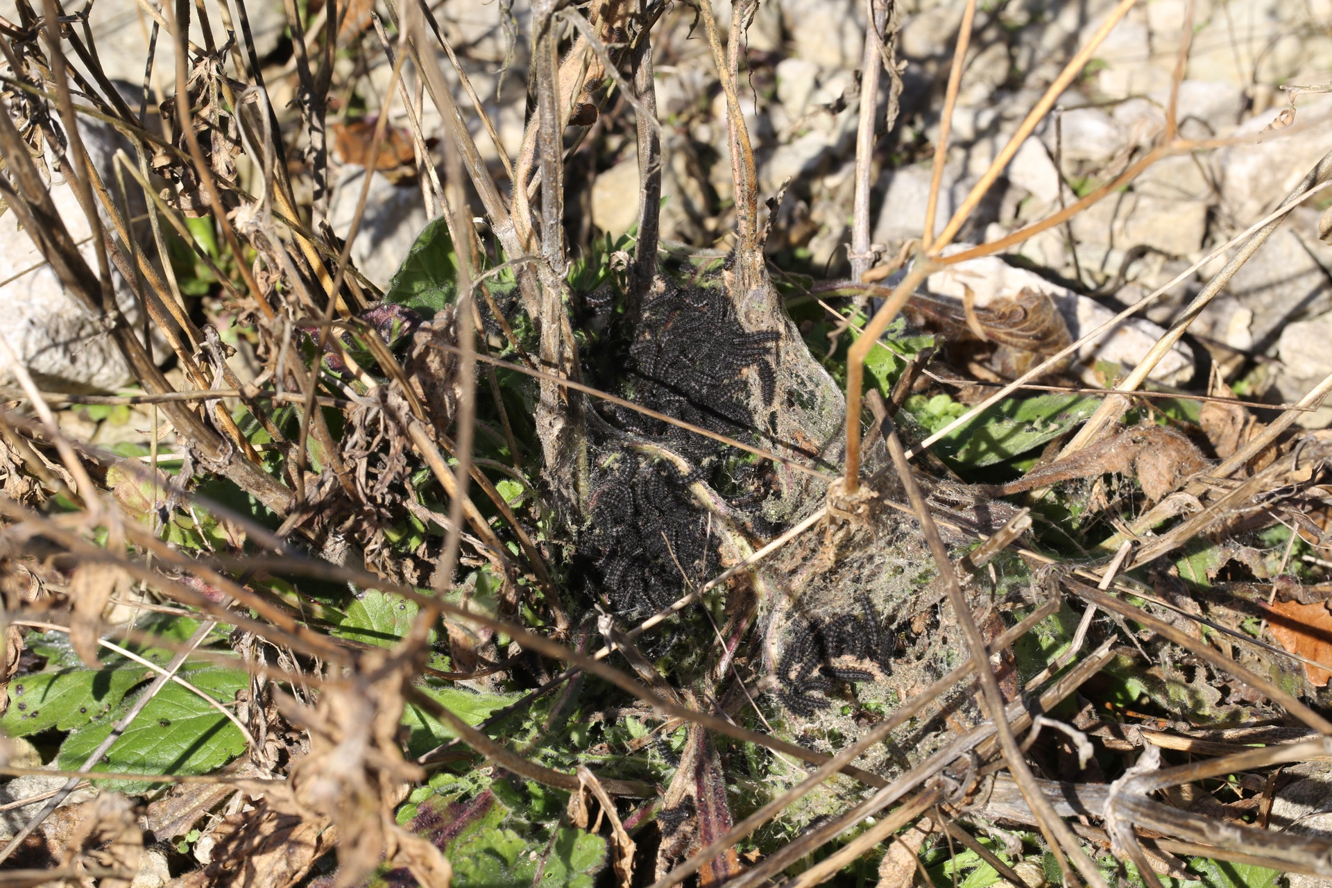 Die Raupen des Goldenen Scheckenfalters sind schon wieder ganz munter.