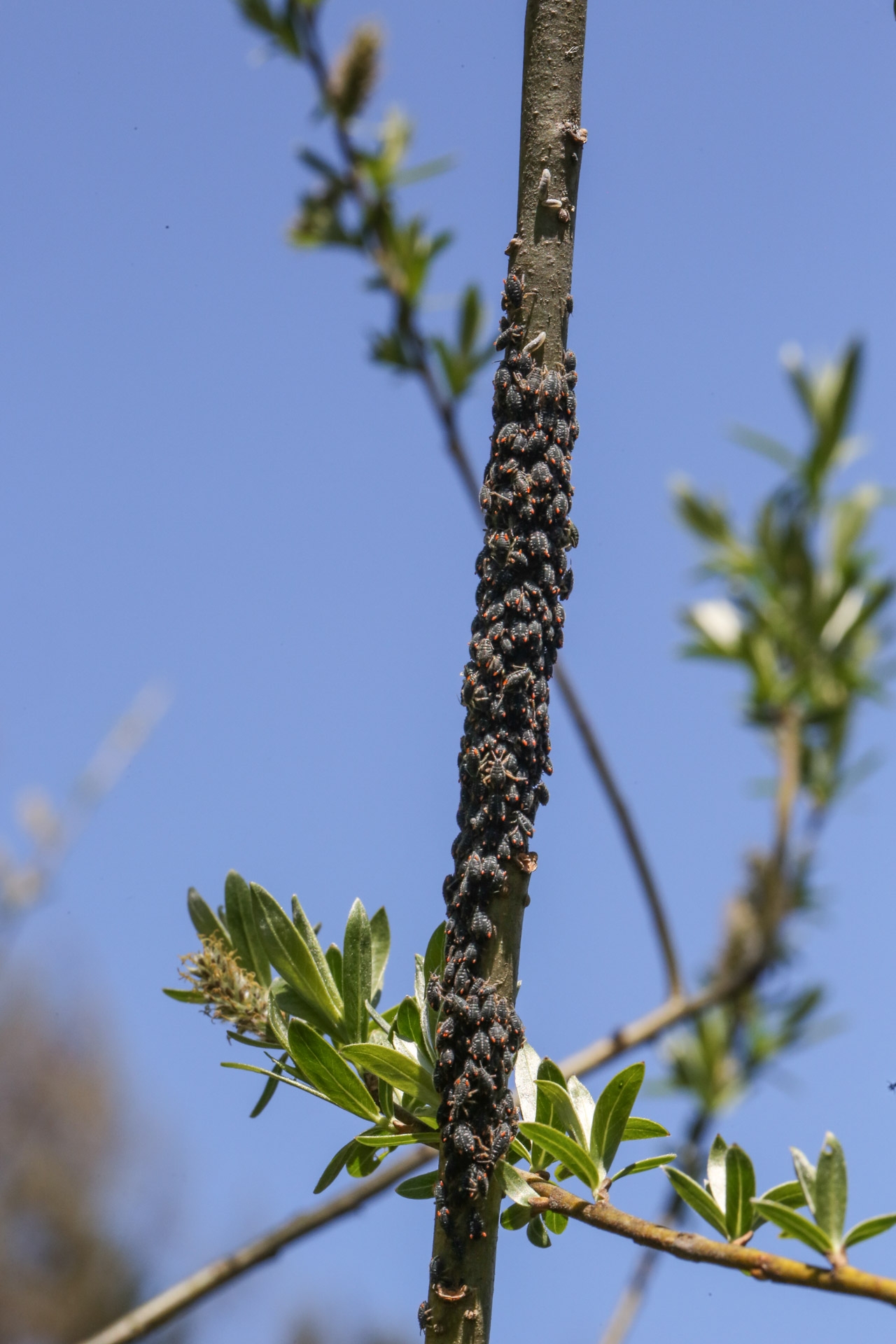 Hier werden die Rindenläuse gemolken. Es handelt sich vermutlich um Pterocomma salicis.