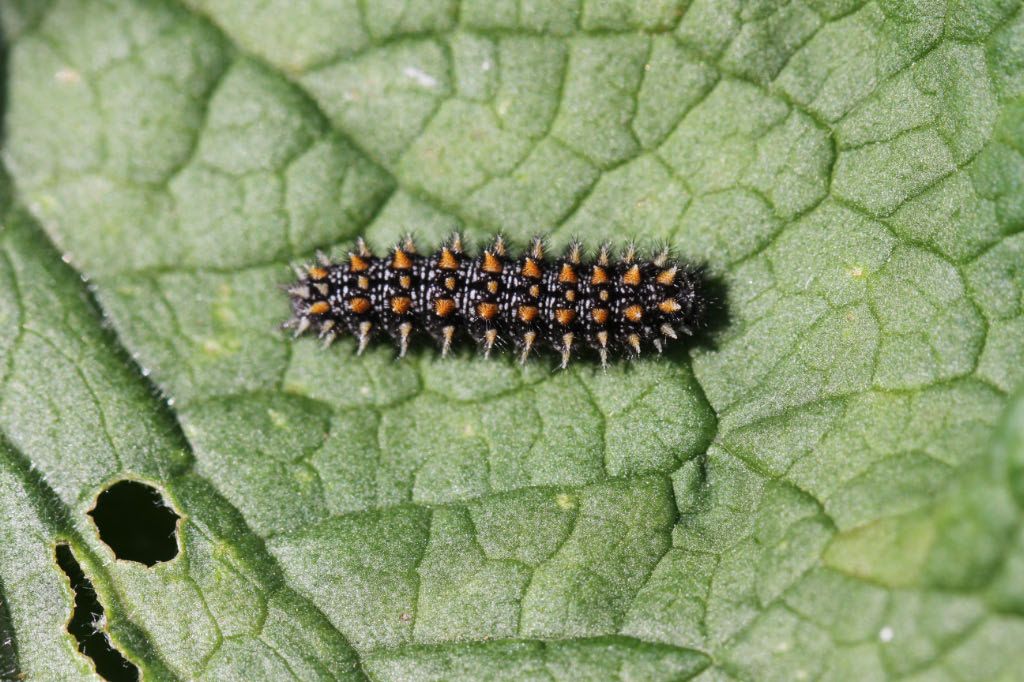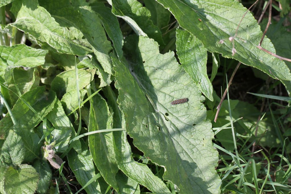 Raupe von Melitaea athalia - fressend an Digitalis purpurea