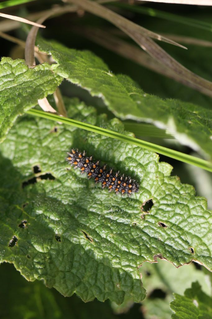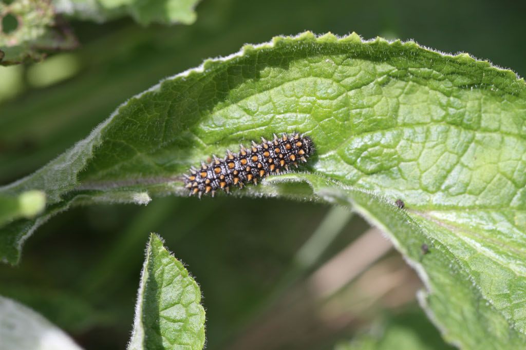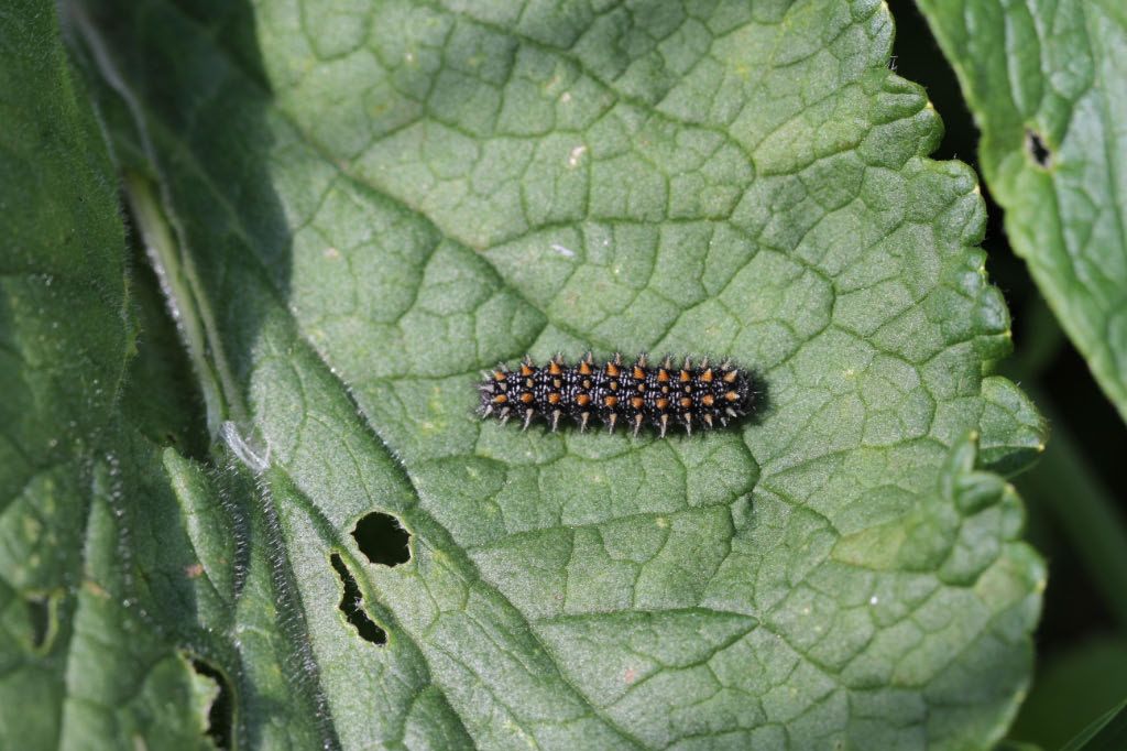 Raupe von Melitaea athalia - an Digitalis purpurea