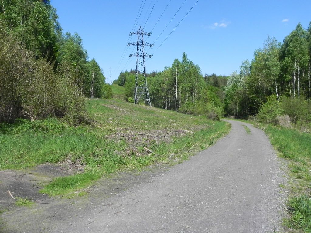 Der Weg runter zur Sandgrube in Merlebach - die Hochspannungstrasse wurde kürzlich wieder freigestellt